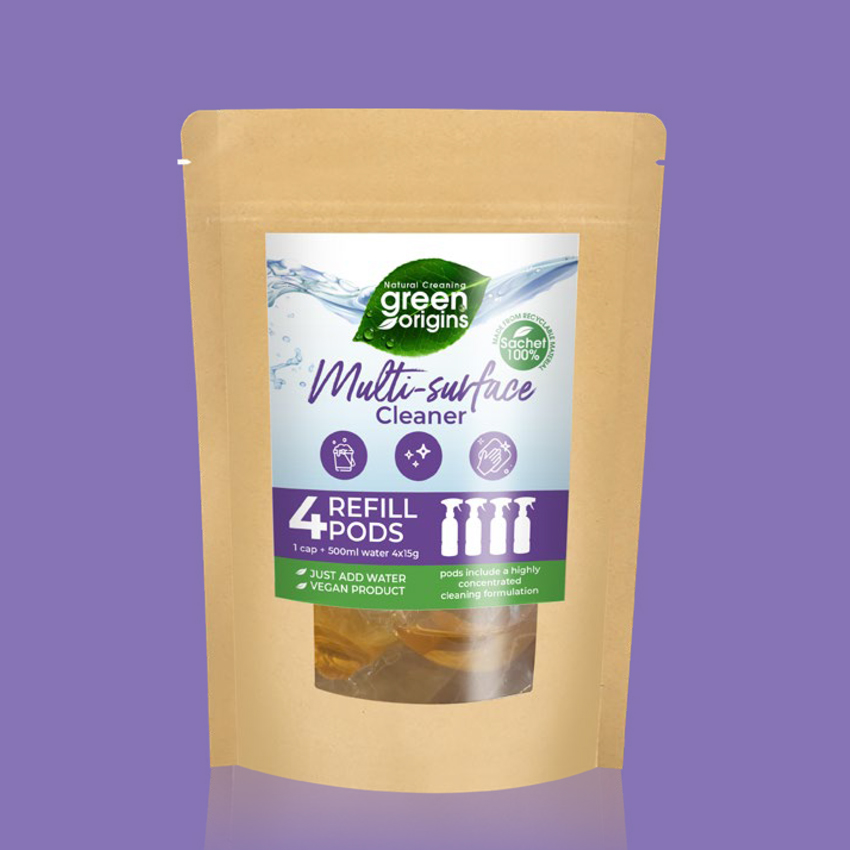 Multi-Purpose Cleaner cleans all household surfaces and removes dirt, buildup and grime. Its ultra-concentrated capsule is pre-measured for convenience, just add warm water to fill the reusable bottle. Cleans counter-tops, walls, hardwood floors, painted surfaces, furniture, laminate, porcelain, granite, bathroom fixtures, wood, sealed stone, electronics, grills and more.